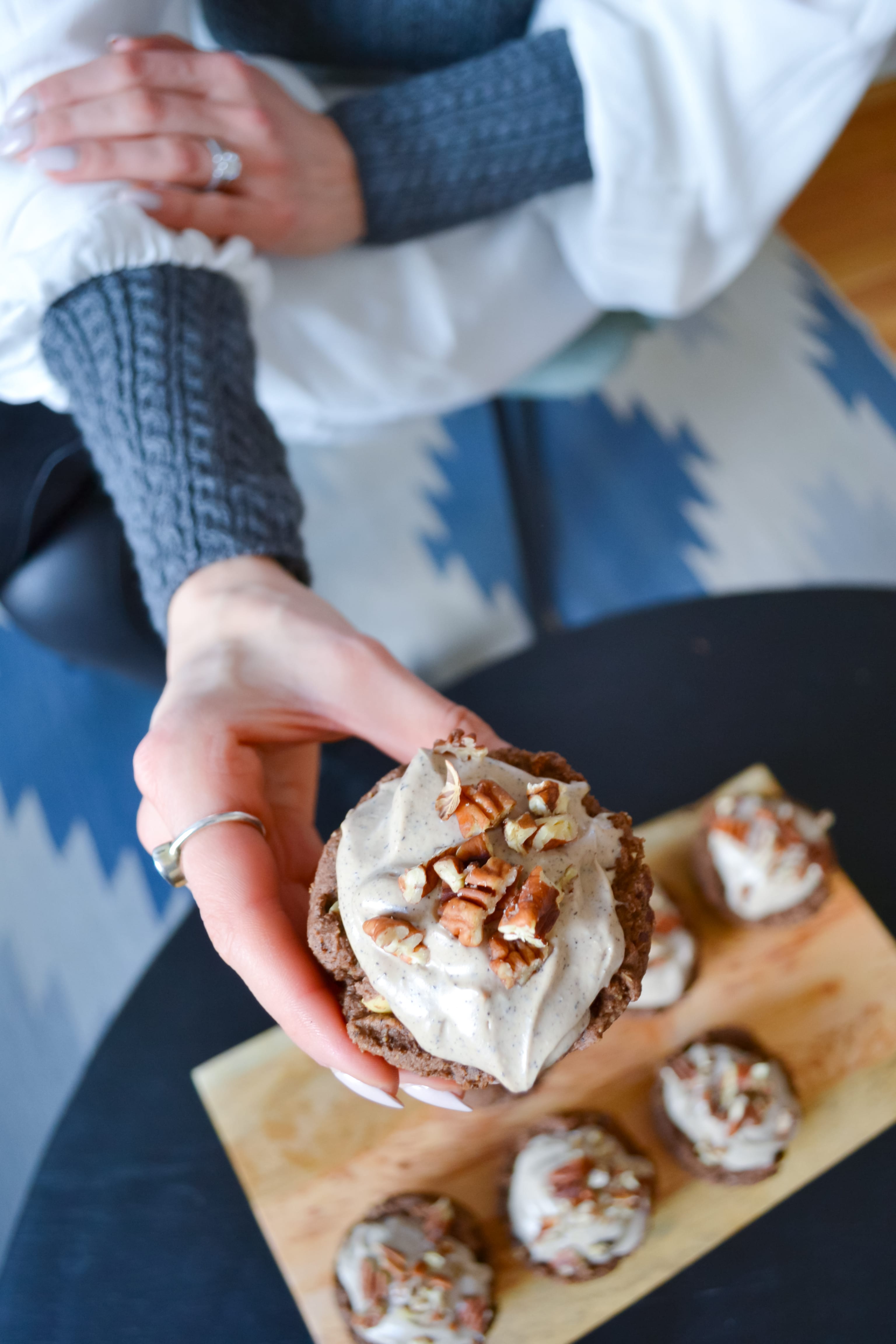 When the muffins are cool top with the frosting. Store in the refrigerator – will keep for 5 days. Alternatively, skip the frosting and keep in the freezer to defrost as needed.